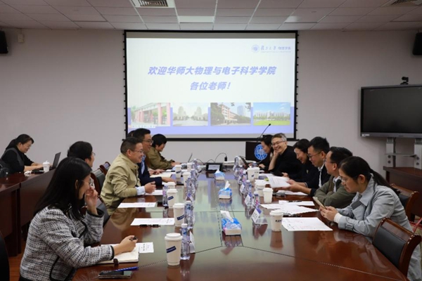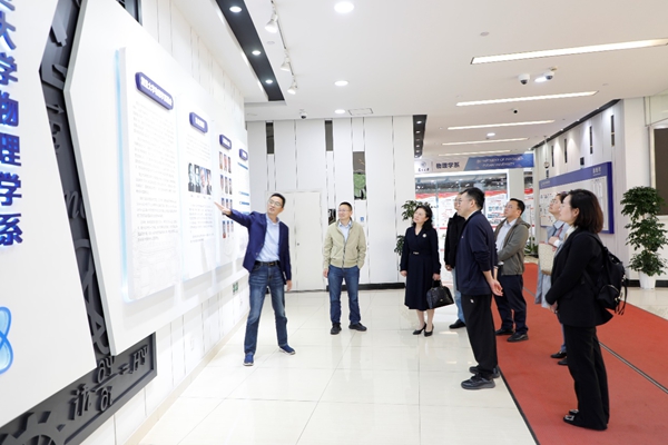 复旦大学物理学系主任吴义政,党委书记刘召伟,副主任向红军、徐娥,党委副书记吴施伟及党政办公室相关人员接待来访并参加调研。