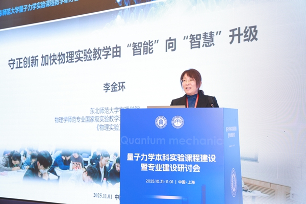 东北师范大学物理学院教授、《物理实验》杂志执行主编、教育部教指委委员、教育部首批大学物理实验课程虚拟教研室(东北师范大学)负责人李金环教授则从物理实验教学改革角度出发,提出应加快实现从“智能实验”向“智慧实验”的升级。她指出,智慧教育是回归育人本质的根本路径,而人工智能为其提供了实现可能。教师可利用AI、大数据等技术提升实验教学的互动性与智能化水平,为学生提供更加个性化、沉浸式的学习体验。